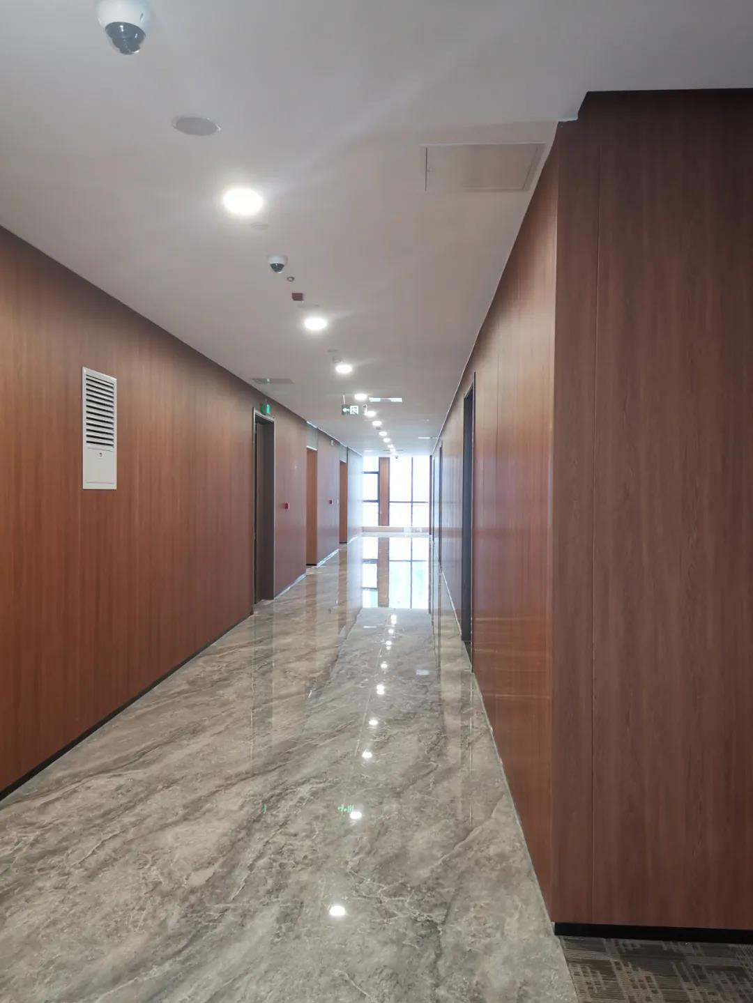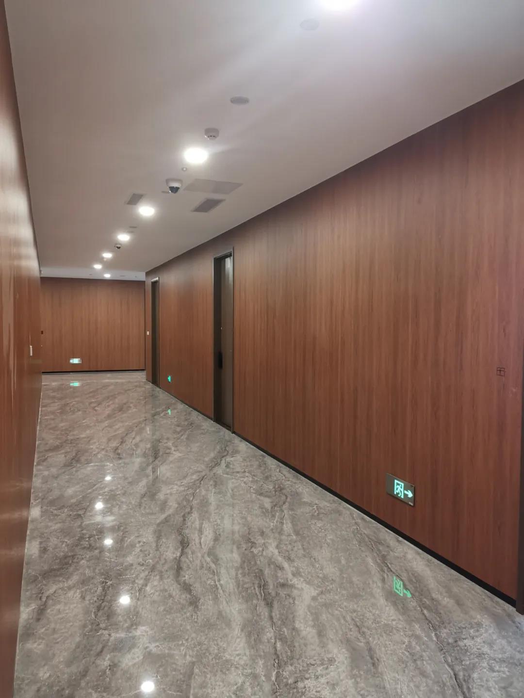 華夏銀行濟南分行此次入駐的是漢峪金融商務中心東北向的A6-3號樓,樓層設計由上海現代建筑設計院主導,設計風格是他們一向擅長的簡約大氣,此次項目墻面大面積采用了PIVOT的圖片產品,1-4樓辦公區域深色胡桃木的整體墻面更顯沉穩厚重,與華夏銀行一直以來深入人心“最具社會責任金融機構”的企業形象高度匹配,彰顯企 業風采。
