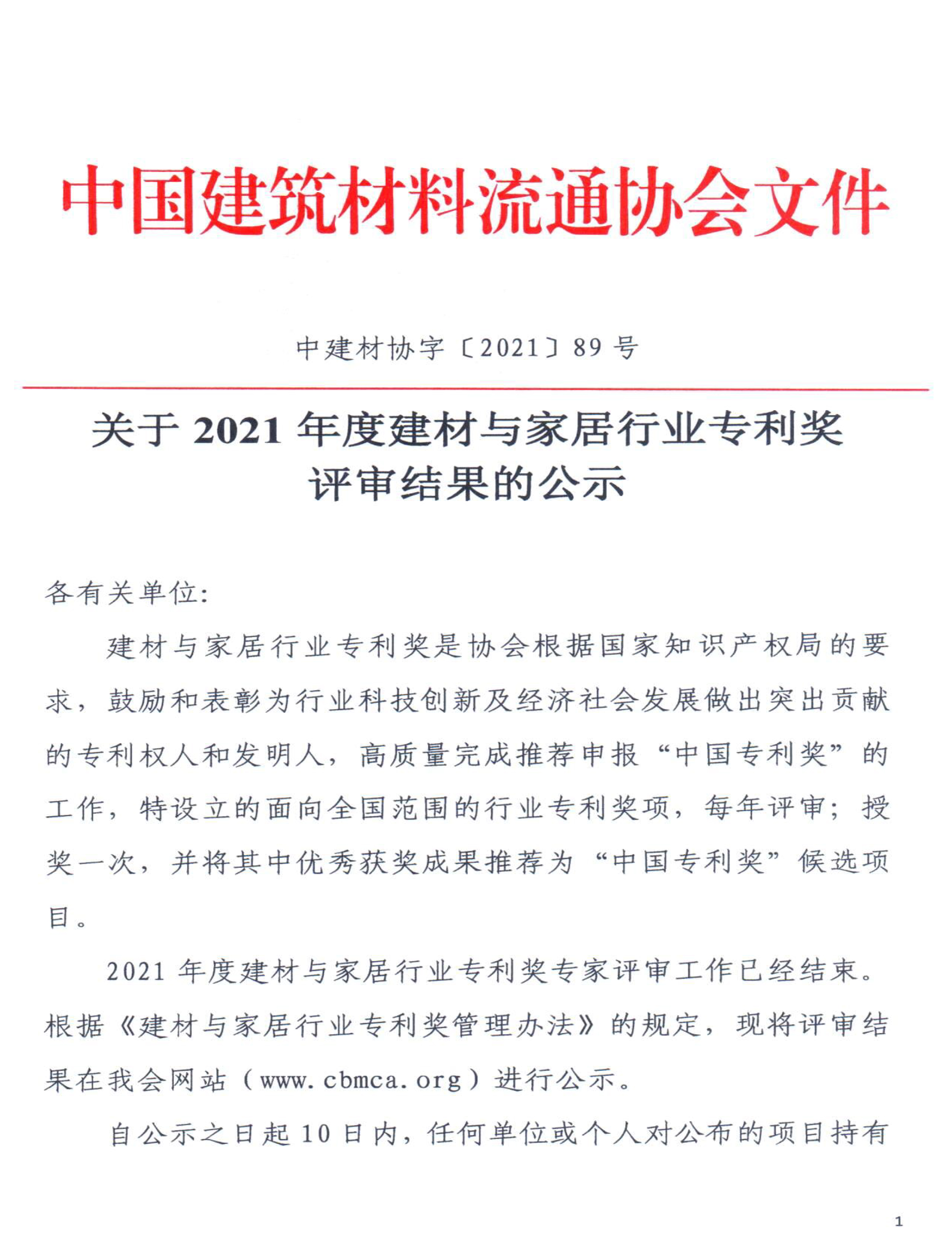 2021年度建材與家居行業(yè)專利獎(jiǎng)