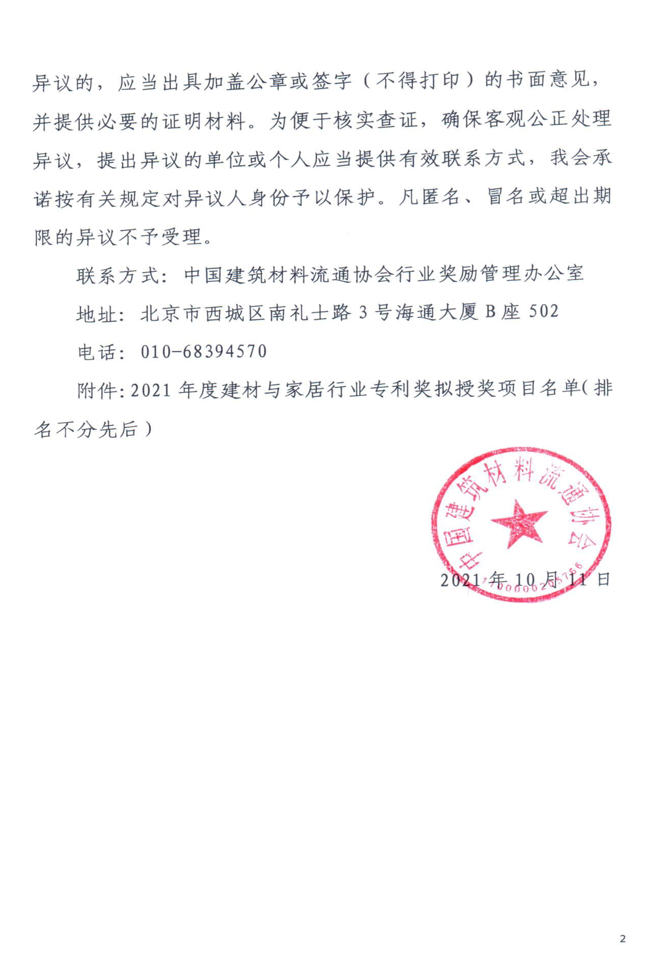 2021年度中國建筑材料流通協(xié)會(huì)科學(xué)技術(shù)獎(jiǎng)