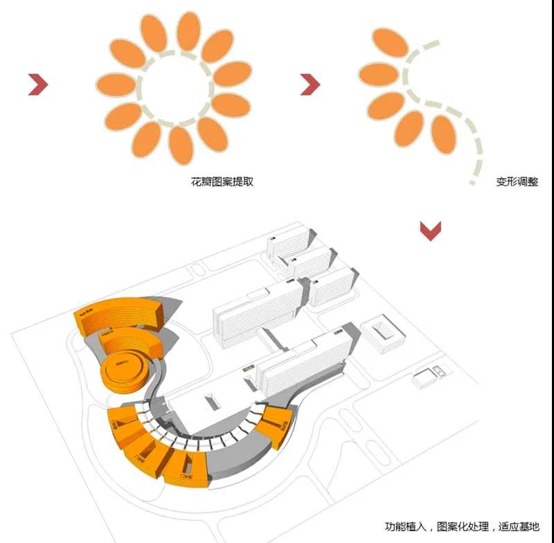 山西省兒童醫(yī)院新院區(qū)項目在方案設(shè)計方面力求展現(xiàn)對患兒視覺感知的關(guān)懷,借用太原市市花——菊花的意向來表達(dá)對城市的致意,并呼應(yīng)了兒童天性活潑與率真的特征。整體方案在場地中的構(gòu)圖充分展現(xiàn)出活潑性、靈活性與恰當(dāng)性,同時又充分考慮到了醫(yī)療功能的合理安排與工藝流線的緊湊性。