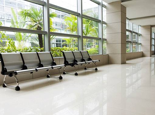 走道地面材料應耐磨、耐久、耐腐蝕,花崗巖是首選材料,由于人流量大,通廊內也有一定物流量,單架車也需在通廊中經過,所以墻面材料應具備抗沖擊、耐磨、可加工成圓角的性能。